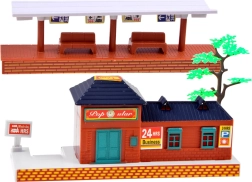Sestavte trať 213 × 120 cm z 22 dílů kolejí, doplňte nádraží, čekárnu a stromy a vytvořte si vlastní železniční scénu.
