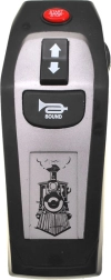 Ovladač s tlačítkem Start/Stop, směrovými šipkami a zvukem lokomotivy umožní plynulé řízení rychlosti i efektů.