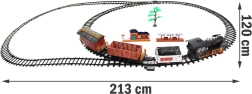 Tato pečlivě zpracovaná elektrická vláčkodráha potěší malé i velké nadšence železnice. Parní lokomotiva při jízdě svítí předním světlem, vydává zvuky skutečného vlaku a po doplnění vody vytváří efekt dýmu z komína. Díky dálkovému ovládání máte rychlost a směr vždy pod kontrolou.