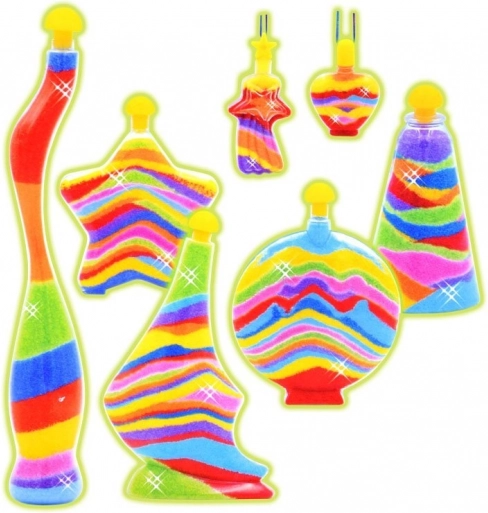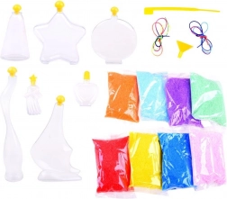 Kompletní balení s lahvičkami, přívěsky, 8 barvami písku a příslušenstvím umožní začít tvořit hned po rozbalení.