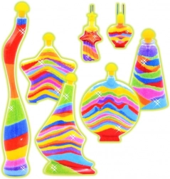 - 5 plastových lahviček s uzávěrem, 2 přívěsky, 8 sáčků barevného písku (každý cca 100 g), 2 barevné šňůrky (cca 77 cm), trychtýř, špachtlička, návod