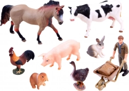 Obsah balení: krowa (kráva), koń (kůň), kogut (kohout), świnka (prasátko), zajączek (zajíček), królik (králík), gęś (husa) a farmář s kolečkem. Každá figurka je ručně malovaná a připravená k tvoření nekonečných scén a příběhů.