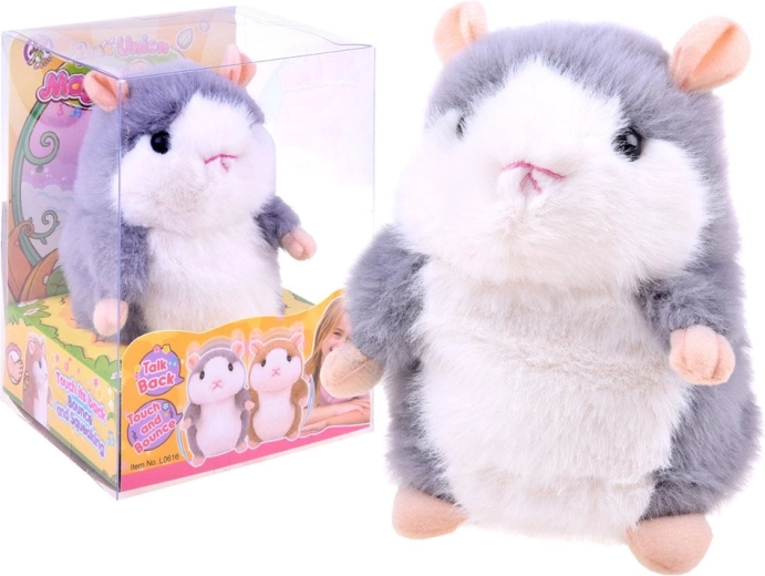 Křeček věrně zopakuje slova i krátké věty v zábavném podání. Ideální pro hry, učení i společnou zábavu.