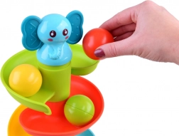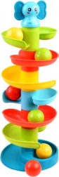 Zábavná kuličková dráha se sloníkem nabízí dětem hodiny hry a rozvoje dovedností. Vysoká spirálová věž s šesti patry a roztomilým sloníkem nahoře podporuje jemnou motoriku, koordinaci oko–ruka a smyslové vnímání. Pusťte barevné kuličky z vrcholu a sledujte, jak se kutálejí po točitých rampách až dolů za veselého chrastění. Odolné provedení z kvalitního plastu a bezpečné zaoblené tvary jsou ideální pro nejmenší.