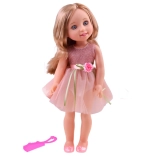 Tato elegantní panenka v jemně růžových třpytivých šatech je ideální pro hraní na ples, čaj o páté i každodenní příběhy. Dlouhé blond vlasy lze česat, upravovat a připínat do různých účesů, což rozvíjí dětskou fantazii i jemnou motoriku.