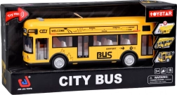 Tento detailně zpracovaný městský autobus v výrazné žluté barvě je vyroben z kvalitního plastu a připraven na každodenní dětskou hru. Disponuje tlačítky na střeše, které spouští alarm, rytmickou melodii a zvuky otevírání, startu a chodu motoru. Během zvukových efektů uvnitř vozu bliká bílá LED, což přidává na autentičnosti.