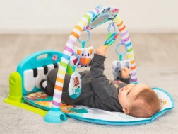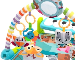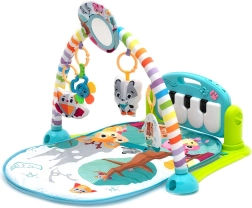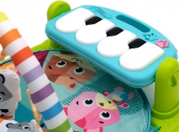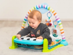 Interaktivní piano se světelnými efekty a melodiemi motivuje děti k pohybu nožičkami i ručičkami. Závěsné hračky, chrastítka a dětské zrcátko rozvíjejí zrak, sluch i hmat a podporují koordinaci oko–ruka. Podložka je měkká, příjemná na dotek a snadná na údržbu.