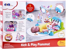 - Měkká hrací podložka, oblouk se 4 závěsnými hračkami a dětským zrcátkem, stojánek pro oblouk a piano, interaktivní piano se světelnými efekty