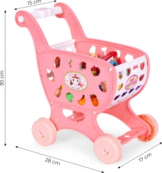 Tento lehký a stabilní nákupní vozík v růžové barvě s pohyblivými kolečky nabízí dětem realistickou hru na nakupování. Součástí je pestrá sada 18 potravin (ovoce, zelenina, vejce, uzeniny a krabičky s „potravinami“), které pomáhají rozvíjet motoriku, organizaci i sociální dovednosti.