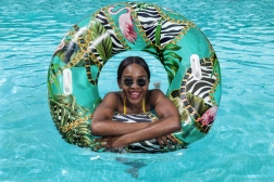 Užijte si léto s pohodlným plovacím kruhem BESTWAY o průměru 114 cm. Odolný PVC materiál, dva pevné úchyty pro bezpečné držení a stylový palmový vzor potěší teenagery od 12 let i dospělé. Ideální na bazén, jezero i moře, snadno se nafukuje a vyfukuje a součástí je i opravná záplata.