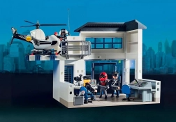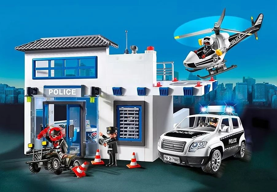 Ve velitelském centru velké policejní stanice bylo přijato tísňové volání. Hledaný padouch prchá na čtyřkolce! Velká brána stanice je již otevřená a honička na signál začíná. Jakmile je podezřelý dopaden, jsou mu sejmuty otisky prstů a zločinec je identifikován. Vězni se však podaří uniknout ze dvou cel, a to dírou ve zdi. Policejní stanice s prostorem pro policejní auto (není součástí balení) a na její střeše je přistávací plocha pro vrtulník.