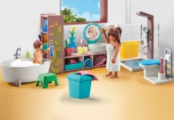 Vychutnejte si pohodovou atmosféru ve stylové koupelně. Sada obsahuje volně stojící vanu, sprchový kout, umyvadlo a řadu koupelnového vybavení. Ideální pro rozšíření nového domu se zimní zahradou. Možnost kombinace s dalšími sadami série PLAYMOBIL Dům.