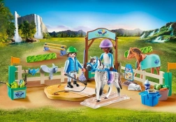 Vstupte do světa jezdeckých dobrodružství s Hřištěm Pro Koně Playmobil. Obsahuje robustní herní prvky včetně pohyblivé základny, dvou figurín Playmobil, koně a různorodého jezdeckého příslušenství.