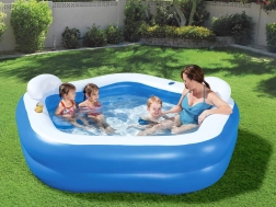 Nafukovací rodinný bazén Bestway je skvělým řešením pro rodinnou zábavu na zahradě. Je navržen tak, aby se snadno instaloval a poskytoval maximální pohodlí všem členům rodiny. Bazén má dvě oddělené komory na vzduch ve tvaru prstenců, které zajišťují lepší stabilitu a zabraňují úniku vzduchu.
