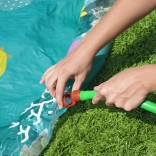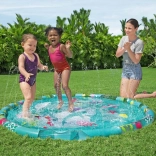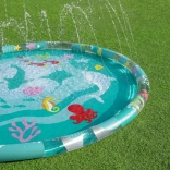 Udělejte z vaší zahrady letní vodní hřiště! Vodní hrací podložka Bestway Underwater Splash s průměrem 165 cm nabízí mělký brod s jemnou fontánou z okrajových trysek. Stačí připojit zahradní hadici a děti si užijí osvěžující postřik, skákání i dovádění. Odolný testovaný vinyl a poutavá mořská grafika zajistí dlouhou zábavu i snadnou údržbu.