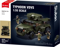 Sluban Typhoon je kvalitní stavebnice pro všechny fanoušky vojenské techniky a akčního hraní. Model v měřítku 1:35 vyniká realistickými detaily, jako je otočná věž, otevírací části a autentické doplňky pro figurky. Stavebnice je vyrobena z odolného a nezávadného ABS plastu a součástí je přehledný návod.