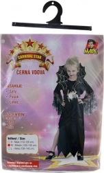Dětský karnevalový kostým Černá Vdova pro malé superhrdiny. Obsahuje šaty, pásek a límec z materiálu polyester.