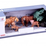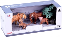 Součástí sady je kompletní rodinka tygrů a doplňky pro tvorbu scén: tygr, tygryně, 2 mláďata, stromek a kámen. Ideální dárek pro malé milovníky zvířat a sběratele, který podněcuje učení formou hry – děti poznají, jak tygři žijí a jak vypadá jejich přirozené prostředí.