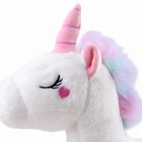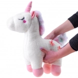 Tento plyšový jednorožec se rychle stane oblíbeným kamarádem dětí doma i na cestách. Je hebký na dotek, lehký a přizpůsobený k mazlení při čtení pohádek i usínání. Jemné barvy a milé detaily, jako srdíčko na tvářičce a květinky na boku, podporují klidnou atmosféru a rozvíjejí dětskou fantazii.