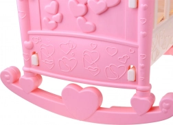 Tato plastová kolébka je ideální pro panenky nebo plyšáky do 42 cm. Ozdobena srdíčky a malým kolotočem, poskytuje dětem radost z péče o jejich hračky a zároveň podporuje jejich kreativitu a představivost.