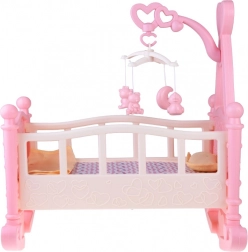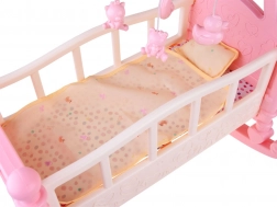 Kompletní hrací set obsahuje kolébku a nezbytná příslušenství pro dokonalou péči o panenky.