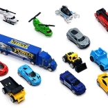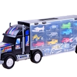 - Velký tahač s návěsem a přihrádkami, sada mini vozidel a strojů