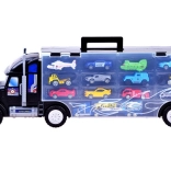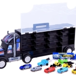 Transparentní návěs s přihrádkami udrží všechny modely přehledně na jednom místě – ideální pro sběratele i malé závodníky.