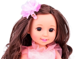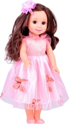 Elegantní panenka o výšce 36 cm potěší malé princezny na oslavách i při čajových dýcháncích. Má dlouhé, česatelné tmavé vlasy s květinovou sponkou, nosí růžové šaty s tylem a motýlky a na nohou odnímatelné baleríny s mašličkami. Podporuje rozvoj fantazie, kreativity a sociálních dovedností a je ideální pro děti od 3 let.