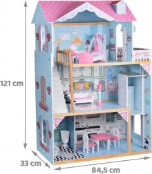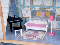 Stabilní dřevěná konstrukce se třemi úrovněmi (přízemí, 1. a 2. patro) a jemnou paletou barev skvěle zapadne do dětského pokoje. Domeček má okna, schodiště a balkon, takže scény z pohádkového zámku ožijí ve dne i po setmění díky LED osvětlení.