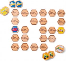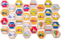 Objevte kouzlo klasické hry v moderním dřevěném provedení. Toto pexeso s motivy aut, vlaků, hasičů či lodí nabízí kvalitní zpracování, odolné materiály a krásné ilustrace, které děti zaujmou. Destičky z přírodního dřeva se příjemně drží a dobře se s nimi manipuluje.