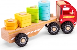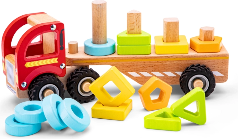 S kamionem, který má odpojitelný přívěs, mohou děti zažít zábavu při stohování a třídění. Díky odolnému materiálu vydrží hračka i náročnější manipulaci v dětských rukou.