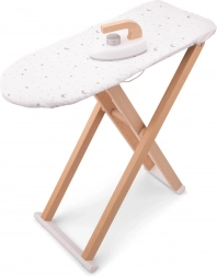 Žehlicí prkno je lehké a složitelné, což usnadňuje jeho uskladnění po hře. Rozměry prkna jsou 550 x 220 x 550 mm, ideální výška pro hru menších dětí. Vyrobeno z bukového dřeva s certifikací FSC, což zajišťuje jeho šetrnost k životnímu prostředí.