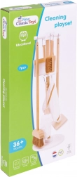 Součástí sady je mop, smeták, prachovka, čisticí hadřík, lopatka a smetáček. Děti si mohou hrát a učit se se všemi nástroji stejně jako dospělí.
