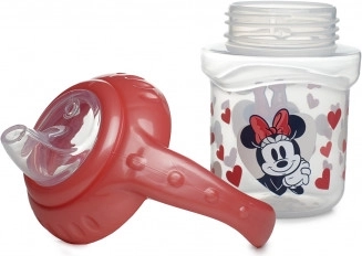 Usnadněte přechod od dudlíku k samostatnému pití. Tento roztomilý hrneček MINNIE s ergonomickými držátky má měkkou silikonovou hubici šetrnou k dětským dásním a netekoucí systém, který brání rozlití nápoje v kočárku, autě i doma.