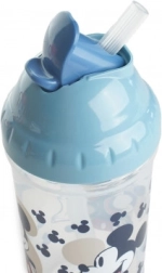 Průhledné tělo s motivem Disney a světle modré víčko motivují děti k častějšímu pití a učí je samostatnosti.