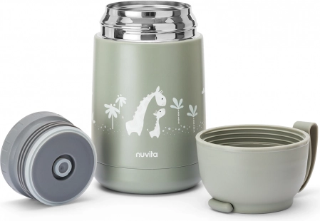 Praktické detaily potěší při každém použití: víčko slouží jako kelímek, široké hrdlo zjednodušuje plnění i čištění a nastavitelná silikonová rukojeť umožňuje pohodlné zavěšení na kočárek nebo batoh. Protiskluzové silikonové dno zvyšuje stabilitu a chrání povrch termosky před poškrábáním.