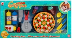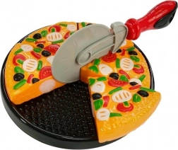 S tímto bohatým setem si děti vyzkouší přípravu a servírování oblíbeného fast foodu. Pizzu tvoří odnímatelné dílky spojené suchým zipem, takže drží pohromadě a současně je lze lehce „rozkrájet“ přiloženým kráječem. Nechybí servírovací lopatka, příbory, talířky ani dvě plastové zmrzliny na dezert. Hra podporuje jemnou motoriku, trénuje koordinaci a rozvíjí sociální dovednosti při společném stolování.