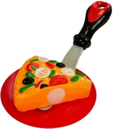 - Realistická hra na vaření: pizza na suchý zip, kráječ, lopatka, příbory a talířky