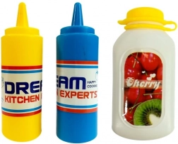 Dvě barevné zmrzliny a tři lahvičky s „omáčkami“ podpoří fantazii dětí při dochucování a servírování.