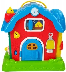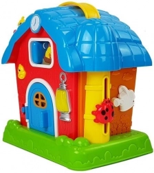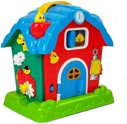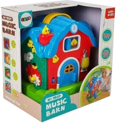 Tato barevná interaktivní stodola přibližuje dětem život na farmě a zároveň je hravou formou seznamuje se základními anglickými slovíčky. Po stisknutí tlačítek nebo otevření dveří se ozývají realistické zvuky zvířat (kráva, ovečka aj.), aktivuje se zvonek a rozsvítí se přední světlo. Na komíně je malé miminko, které po stisknutí vypráví krátký příběh, a nechybí ani slepička, která pomůže s probouzením i usínáním.