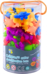 Sada obsahuje pestrou sbírku barevných dinosaurů a šest pohárků v jasných barvách, kam mohou děti umístit své dinosaury. Pro hru je také součástí speciální kleštička, která dětem pomáhá přesouvat dinosaury a třídit je podle barev. To posiluje motorické dovednosti a koordinaci.