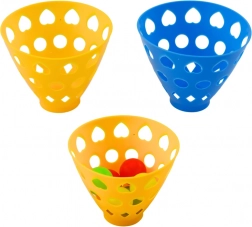 Košíčky a míčky jsou vyrobeny z robustního, lehkého plastu. Jasné barvy lákají ke hře a materiál se snadno čistí – ideální na zahradu, do parku i do dětského pokoje.