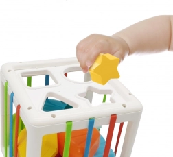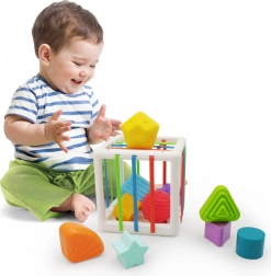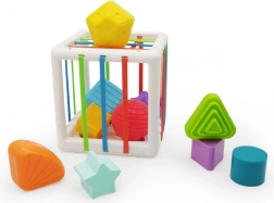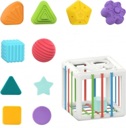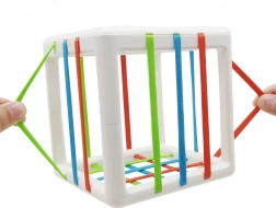 Elastická smyslová kostka je inovativní vzdělávací hračka, která spojuje tvarový sorter a stimulaci smyslů. Děti vkládají barevné geometrické dílky skrz pružné gumičky, čímž trénují precizní úchop, trpělivost a logické myšlení. Vhodné pro samostatnou i společnou hru.