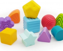 Velké, hladké a výrazně barevné tvary podporují bezpečnou hru a přitahují dětskou pozornost.