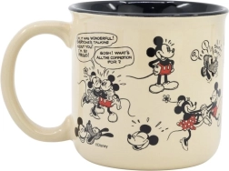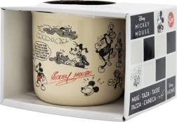 Hrnek je zdoben ilustracemi klasického Mickey Mouse v komiksovém stylu, které přinášejí nostalgii a kouzlo Disney postaviček.