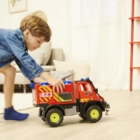 Hasičské auto Mercedes-Benz Unimog U530 je skvělá hračka pro děti, které milují akci a dobrodružství. Toto červené auto, dlouhé 50 cm, je vybaveno světelnými a zvukovými efekty, které přinášejí autentičnost a zábavu do každé hry. Staňte se součástí záchranné akce s jeho pohyblivými částmi, jako jsou otevírací dveře a výkyvné nápravy.