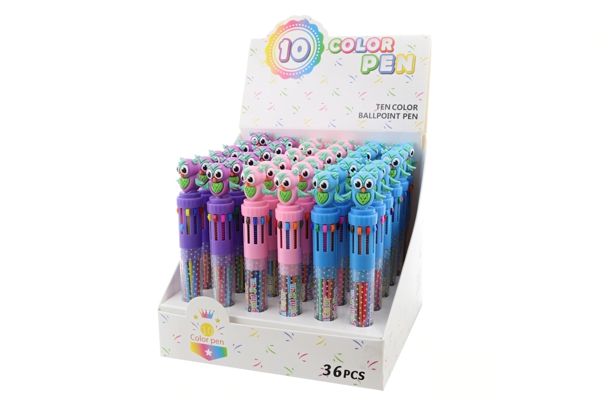 Stylová vícebarevná propiska s motivem soviček nabízí 10 různých barev v jednom peru. Kompaktní provedení je ideální do penálu i kabelky a díky roztomilému designu se skvěle hodí pro školu, kancelář i kreativní psaní. Snadné přepínání barev a pohodlné držení zajišťují příjemné používání. Výrobek není hračka.
