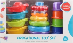 - 4 lodičky do vody, skládací pyramida s kroužky, 4 stohovací kelímky