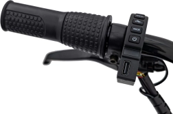- Pohodlí – měkké sedlo z eko kůže a plynulá regulace rychlosti manetou.
