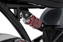 O bezpečí a pohodlí se stará široké sedlo z eko kůže (29 × 52 × 19 cm), pomocná boční kolečka a světlá výška 12 cm. Přední LED světlo a podsvětlený motor podtrhují realistický vzhled. Zábavu dodá audio panel s MP3 a USB, vestavěné melodie i imitace zvuku motoru.